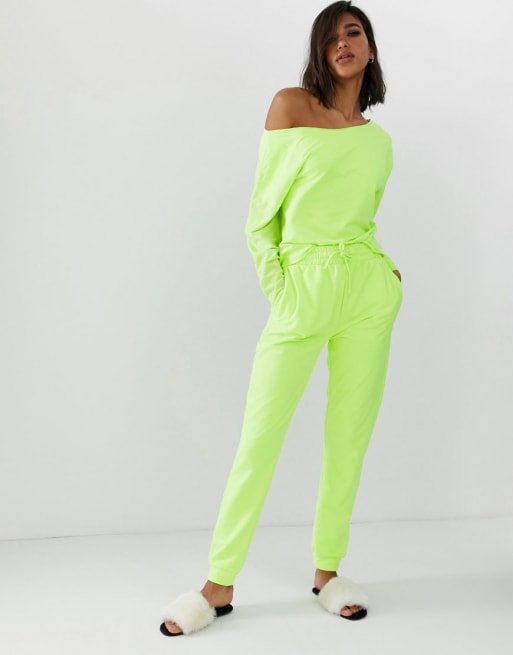 ASOS DESIGN Lounge - Completo felpa e joggers con bordi grezzi fluo