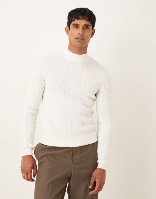 ASOS DESIGN - Maglietta a maniche lunghe attillata con collo alto in maglia bianco sporco a coste