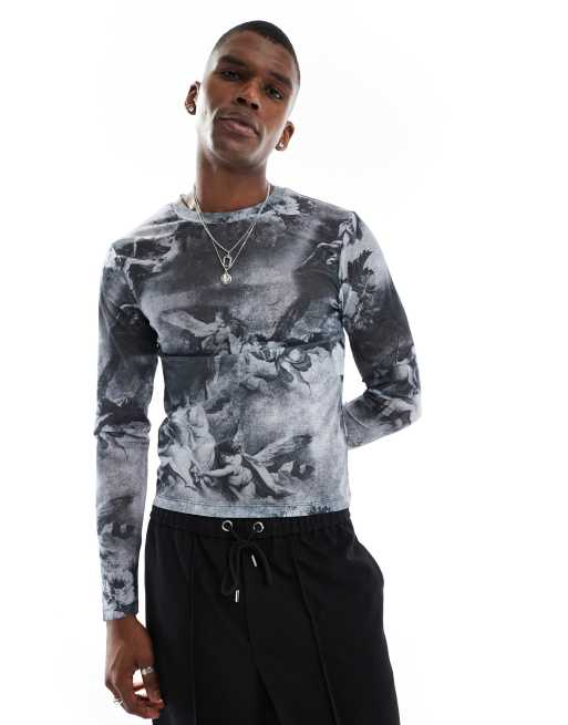 ASOS DESIGN - Maglietta a maniche lunghe attillata in rete stampata