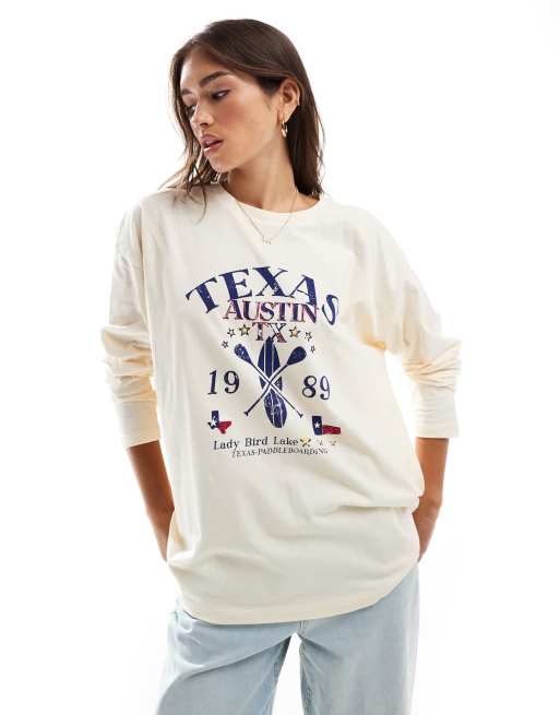ASOS DESIGN - Maglietta a maniche lunghe écru con grafica "Austin Texas" e di remi