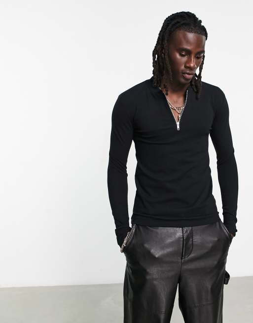 ASOS DESIGN - Maglietta a maniche lunghe elegante attillata nera con zip