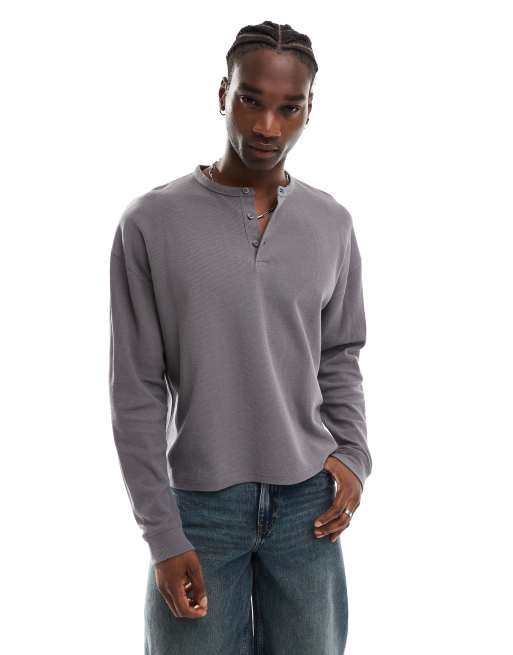 ASOS DESIGN - Maglietta a maniche lunghe oversize antracite tintura a pigmenti con scollo serafino