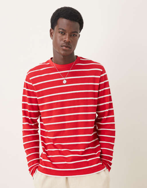 ASOS DESIGN - Maglietta a maniche lunghe rossa a righe bianche