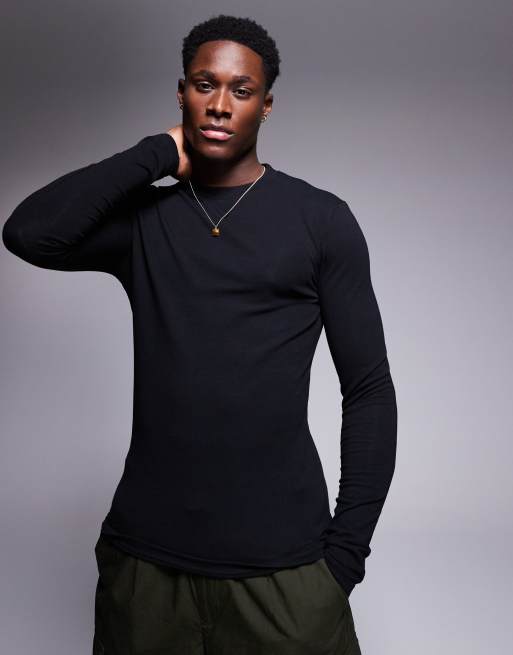 ASOS DESIGN - Maglietta girocollo attillata a maniche lunghe nera con grafica