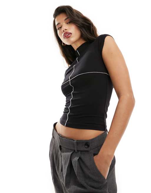 ASOS DESIGN - Maglietta ristretta nera e grigia con cuciture a vista