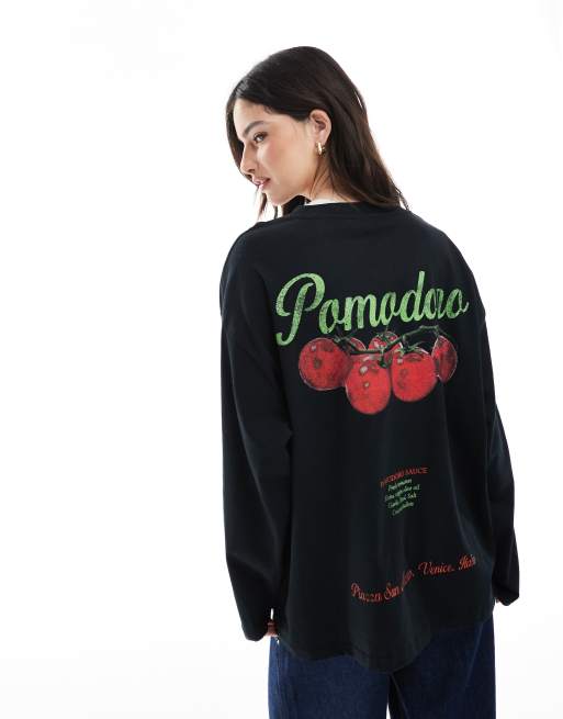 ASOS DESIGN - Maglietta skater a maniche lunghe nera con grafica “Pomodoro”