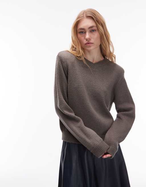 ASOS DESIGN - Maglione accollato grigio con spalle imbottite e scollo a V