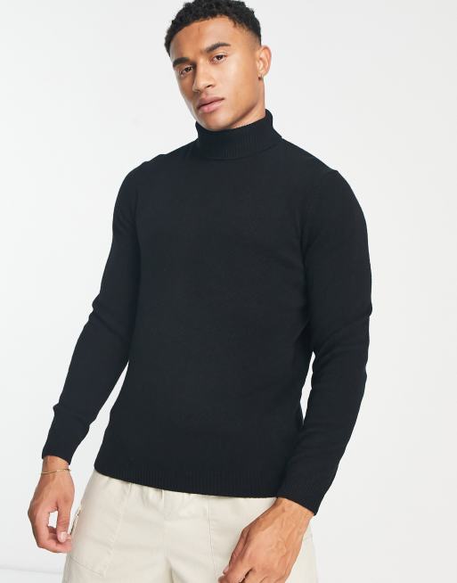 ASOS DESIGN - Maglione con collo alto in lana di agnello nero