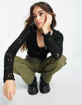 ASOS DESIGN - Maglione con cuciture traforate nero con lacci