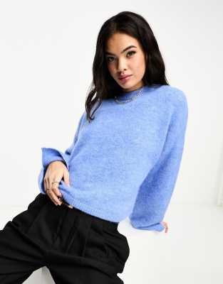 ASOS DESIGN - Maglione girocollo blu in misto lana d'alpaca con polsini ampi con spacco