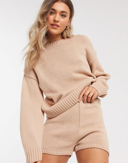 ASOS DESIGN - Maglione girocollo e pantaloncini rosa in coordinato