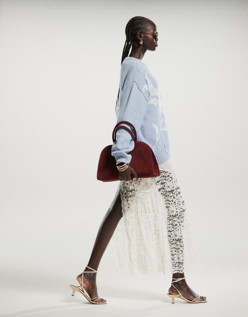 ASOS DESIGN - Maglione girocollo oversize azzurro con stampa di rosa