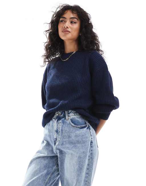 ASOS DESIGN - Maglione girocollo spesso blu navy