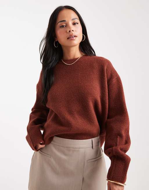 ASOS DESIGN - Maglione girocollo squadrato color toffee con spacco laterale