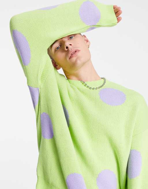 ASOS DESIGN - Maglione lavorato a maglia verde a pois