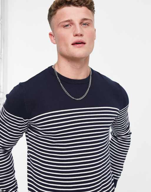 ASOS DESIGN - Maglione lavorato a righe "breton" blu navy