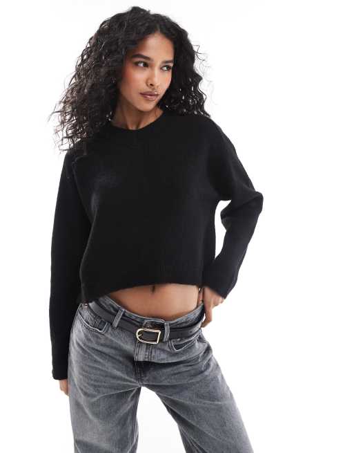 ASOS DESIGN - Maglione lavorato nero con scollo a V alto e spalle a sella