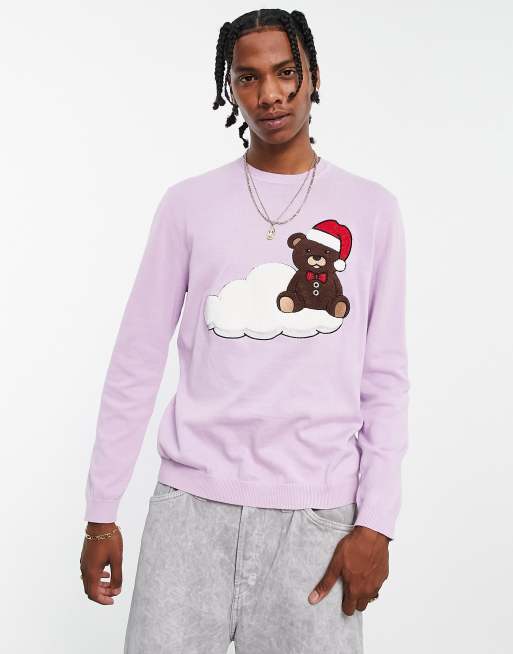 ASOS DESIGN - Maglione natalizio lavorato a maglia lilla con orsacchiotto applicato