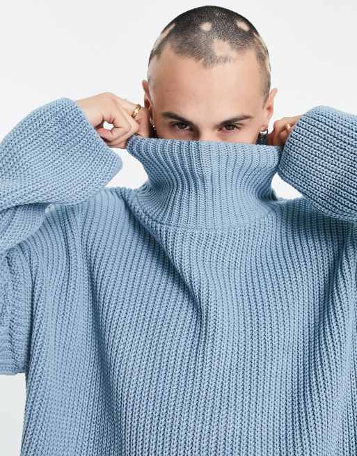 ASOS DESIGN - Maglione oversize con collo a imbuto blu polvere