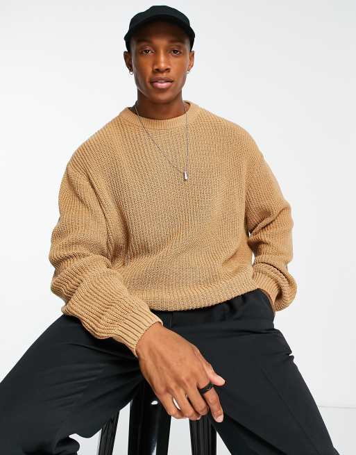 ASOS DESIGN - Maglione oversize in maglia a coste inglesi marrone chiaro