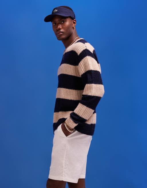 ASOS DESIGN - Maglione oversize lavorato con finitura testurizzata a righe blu navy ed écru