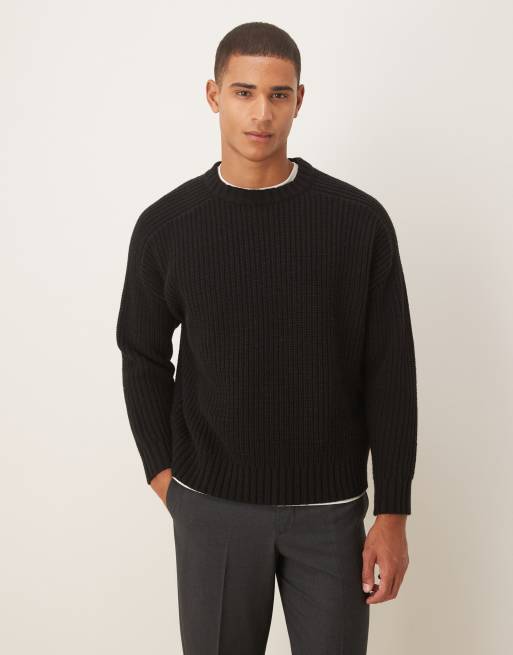 ASOS DESIGN - Maglione oversize pesante in misto lana a coste nero