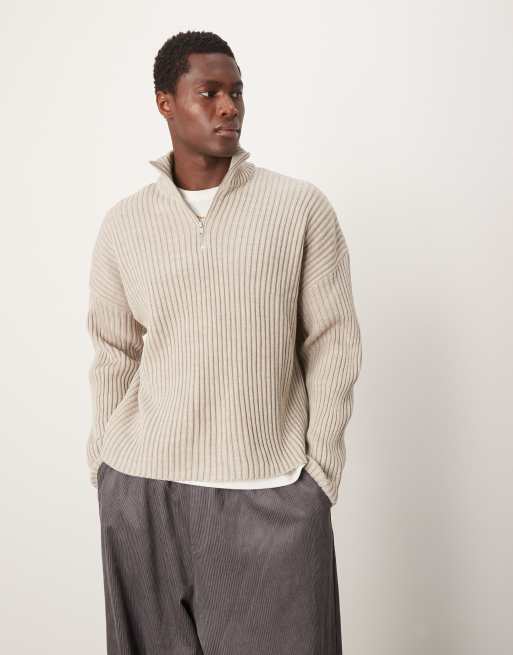 ASOS DESIGN - Maglione oversize squadrato beige con zip corta