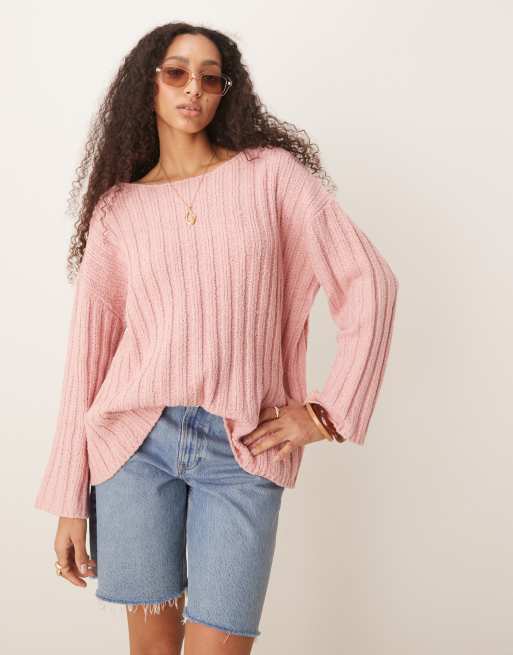 ASOS DESIGN - Maglione rosa testurizzato a coste con scollo a barchetta