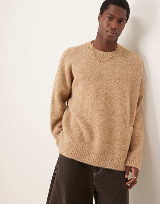 ASOS DESIGN - Maglione super oversize squadrato testurizzato beige con tasca.