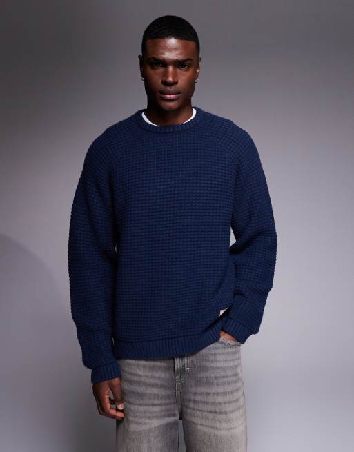 ASOS DESIGN - Maglione testurizzato oversize blu navy con etichetta intessuta