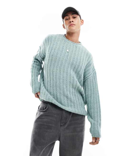 ASOS DESIGN - Maglione traforato leggero morbido a coste blu chiaro