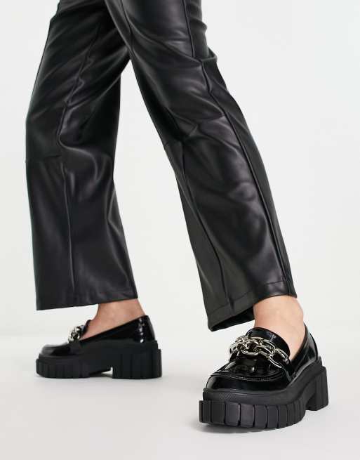 ASOS DESIGN - Magnum - Mocassini neri con suola super spessa e catenina