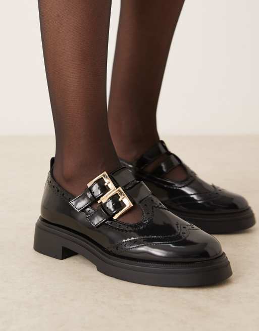 ASOS DESIGN - Marigold - Scarpe basse nere con fibbie e suola spessa