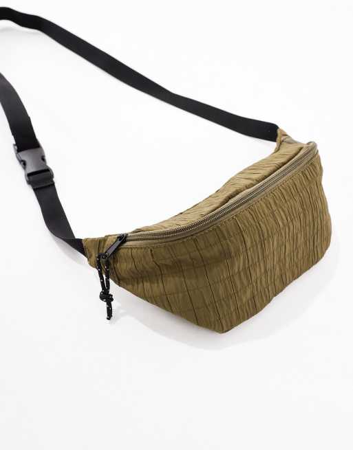 ASOS DESIGN - Marsupio in nylon color kaki con arricciature