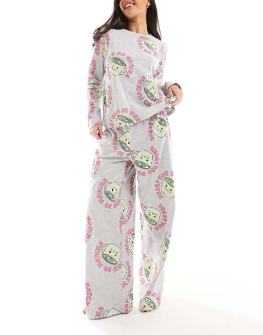 ASOS DESIGN - Matcha - Pigiama con top a maniche lunghe e pantaloni grigio mélange