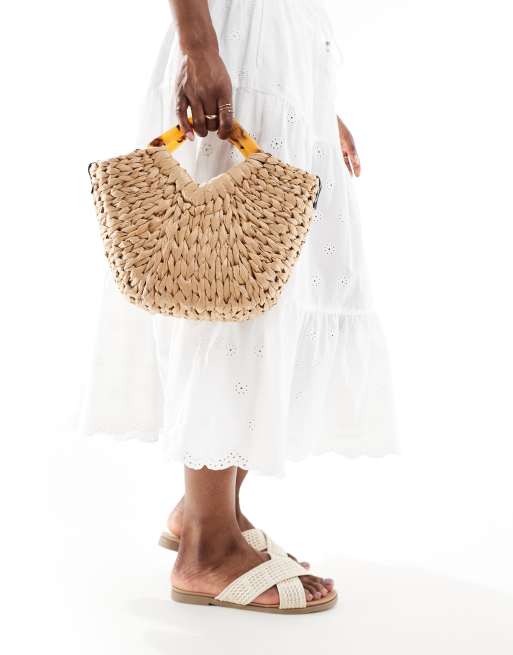 ASOS DESIGN - Maxi borsa in paglia con tracolla rimovibile e manici in resina tartarugati
