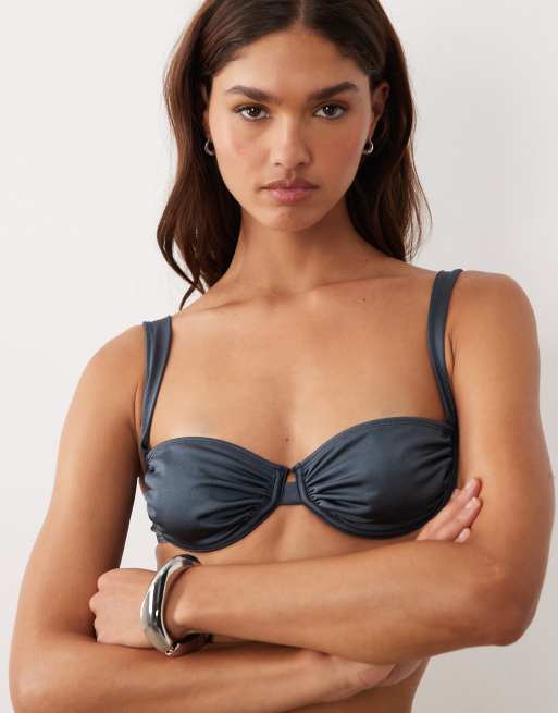ASOS DESIGN - Maya Cape Cod - Top bikini a balconcino antracite con ferretto e fiocco sul retro