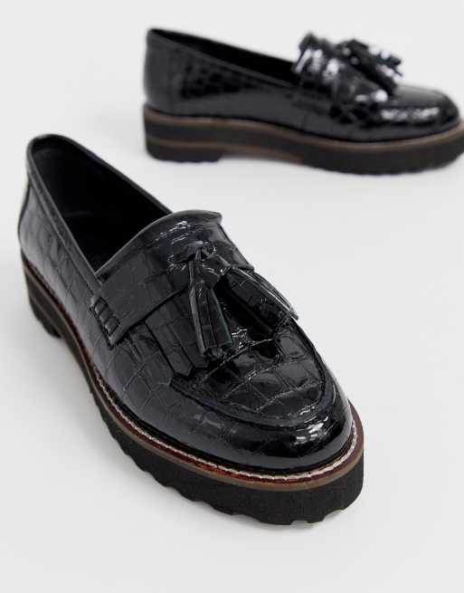 ASOS DESIGN - Meze - Mocassini in pelle nera con frange e suola spessa