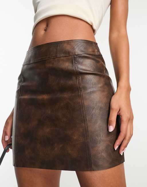 ASOS DESIGN - Microgonna in pelle sintetica marrone slavato