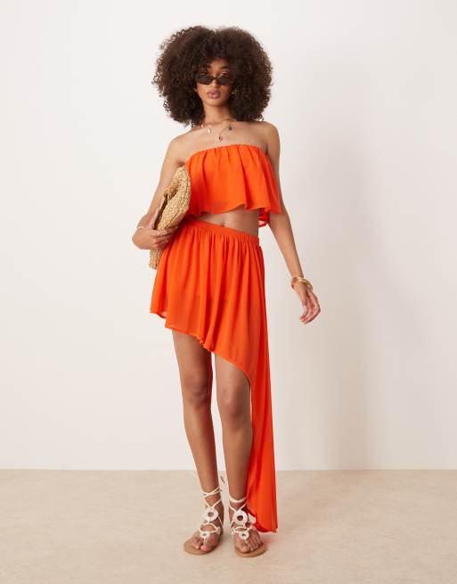 ASOS DESIGN - Minigonna arancione con orlo asimmetrico e volant in coordinato