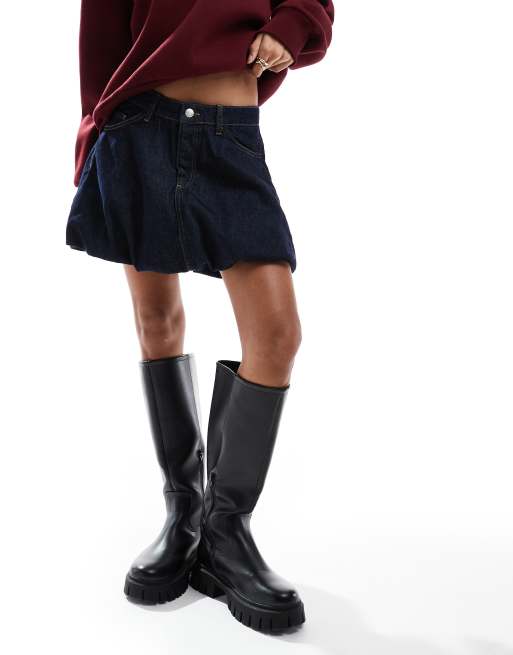 ASOS DESIGN - Minigonna in denim blu medio a palloncino