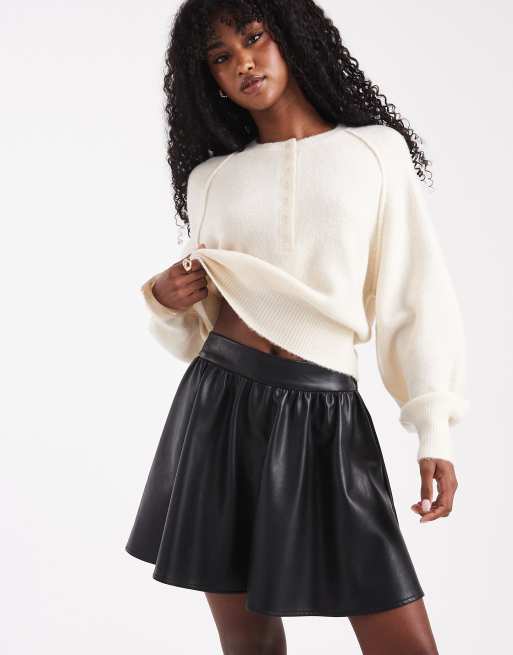 ASOS DESIGN - Minigonna nera voluminosa in pelle sintetica