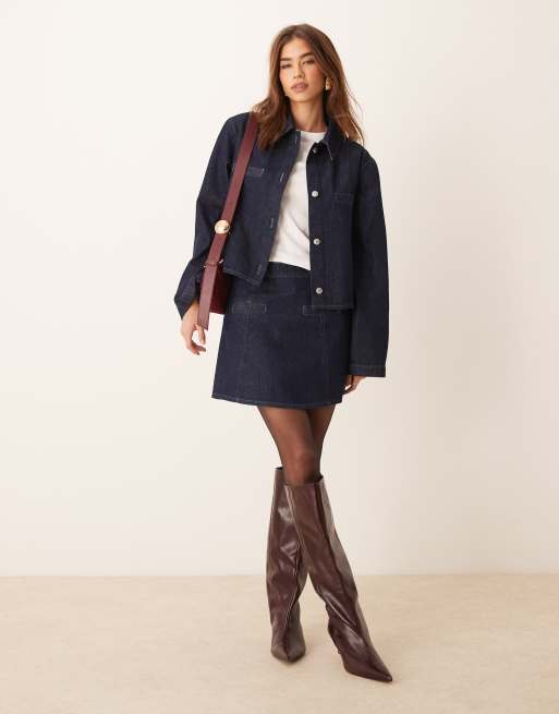 ASOS DESIGN - Minigonna sartoriale in denim indaco con cuciture a vista