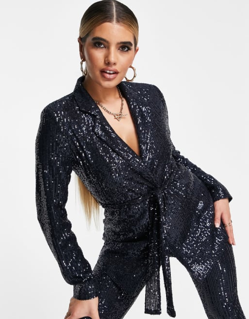 ASOS DESIGN - Mix and Match - Abito in jersey e paillettes blu navy mezzanotte