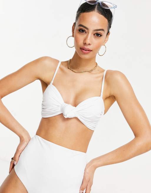 ASOS DESIGN - Mix and Match - Top bikini a fascia con nodo bianco
