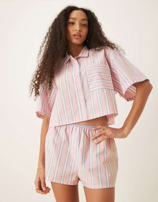 ASOS DESIGN - Mix & Match - Pigiama rosa e blu a righe