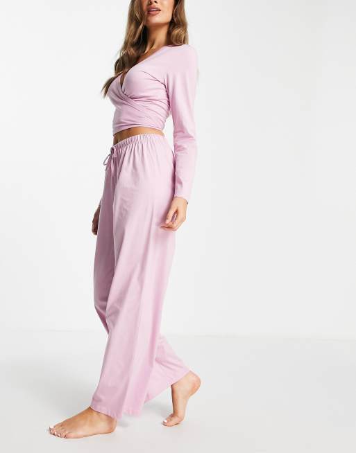 ASOS DESIGN - Mix & Match - Top del pigiama a maniche lunghe a portafoglio in cotone rosa - PINK