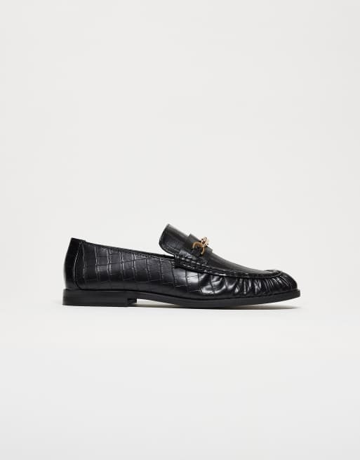 ASOS DESIGN - Mocassini college neri effetto coccodrillo con arricciature