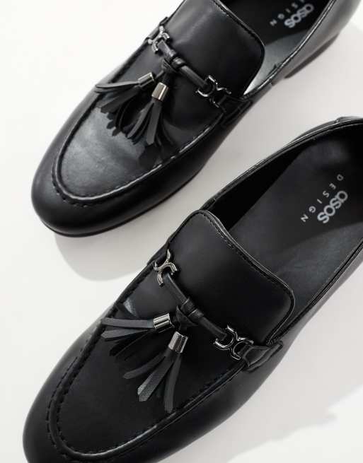 ASOS DESIGN - Mocassini neri in pelle sintetica con nappe