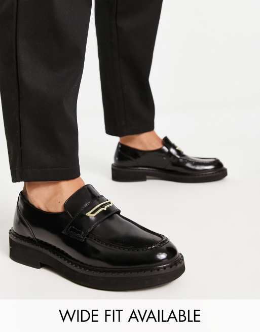 ASOS DESIGN - Mocassini neri in pelle verniciata con suola spessa